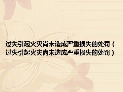 目前大家应该是对过失引起火灾尚未造成严重损失的处罚比较感兴趣的,所以今天CC就来为大家整理了一些关于过失引起火灾尚未造成严重损失的处罚方面的相关知识来分享给大家,希望大家会喜欢哦。