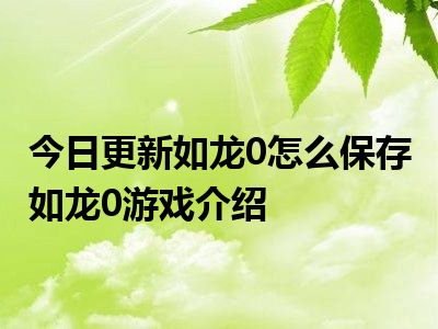 目前上述的内容应该能够为大家解答出大家对于如龙0怎么保存 如龙0游戏介绍的疑惑了,所以如果大家还想要了解更多的知识内容,也可以关注本站其他文章进行了解哦。