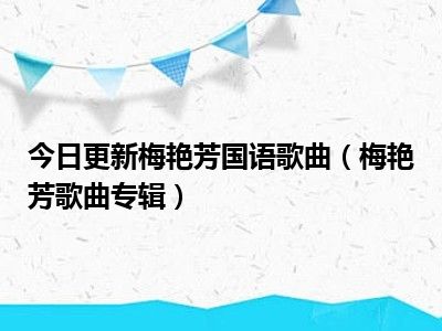 目前上述的内容应该能够为大家解答出大家对于梅艳芳国语歌曲(梅艳芳歌曲专辑)的疑惑了,所以如果大家还想要了解更多的知识内容,也可以关注本站其他文章进行了解哦。