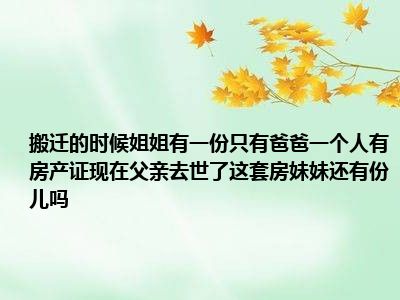 导读 目前大家应该是对动迁时我姐姐有份额,产证只有我父亲一个人,现在我父亲过世,请问我姐姐在这套房还有份吗比较感兴趣的,所以今天好房网小编C