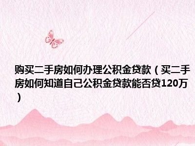 导读 目前大家应该是对买二手房,如何知道自己公积金贷款能否贷120万比较感兴趣的,所以今天好房网小编CC就来为大家整理了一些关于买二手房,如