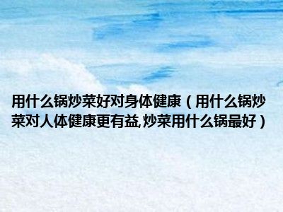 目前大家应该是对用什么锅炒菜对人体健康更有益,炒菜用什么锅最好比较感兴趣的,所以今天小编CC就来为大家整理了一些关于用什么锅炒菜对人体健康更有益,炒菜用什么锅最好方面的相关知识来分享给大家,希望大家会喜欢哦。