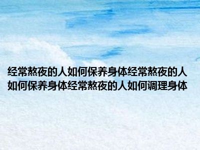 目前大家应该是对熬夜的人怎么保养身体,经常熬夜的人怎么保养身体,经常熬夜的人怎么调理比较感兴趣的,所以今天小编CC就来为大家整理了一些关于熬夜的人怎么保养身体,经常熬夜的人怎么保养身体,经常熬夜的人怎么调理方面的相关知识来分享给大家,希望大家会喜欢哦。