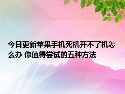 目前上述的内容应该能够为大家解答出大家对于苹果手机死机开不了机怎么办 你值得尝试的五种方法的疑惑了,所以如果大家还想要了解更多的知识内容,也可以关注本站其他文章进行了解哦。