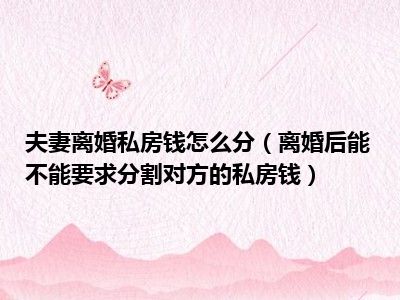 目前大家应该是对离婚后能不能要求分割对方的私房钱比较感兴趣的,所以今天CC就来为大家整理了一些关于离婚后能不能要求分割对方的私房钱方面的相关知识来分享给大家,希望大家会喜欢哦。