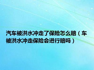 目前大家应该是对车被洪水冲走保险会进行赔吗比较感兴趣的,所以今天CC就来为大家整理了一些关于车被洪水冲走保险会进行赔吗方面的相关知识来分享给大家,希望大家会喜欢哦。