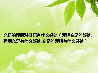目前大家应该是对睡眠充足的好处,睡眠充足有什么好处,充足的睡眠有什么好处比较感兴趣的,所以今天小编CC就来为大家整理了一些关于睡眠充足的好处,睡眠充足有什么好处,充足的睡眠有什么好处方面的相关知识来分享给大家,希望大家会喜欢哦。