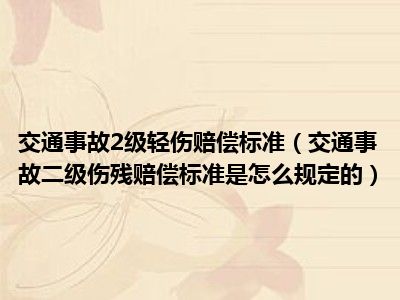 目前大家应该是对交通事故二级伤残赔偿标准是怎么规定的比较感兴趣的,所以今天CC就来为大家整理了一些关于交通事故二级伤残赔偿标准是怎么规定的方面的相关知识来分享给大家,希望大家会喜欢哦。