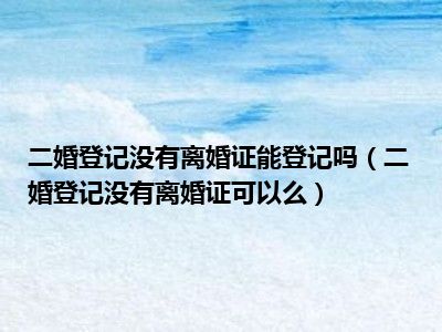 目前大家应该是对二婚登记没有离婚证可以么比较感兴趣的,所以今天CC就来为大家整理了一些关于二婚登记没有离婚证可以么方面的相关知识来分享给大家,希望大家会喜欢哦。