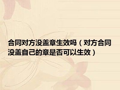 目前大家应该是对对方合同没盖自己的章是否可以生效比较感兴趣的,所以今天CC就来为大家整理了一些关于对方合同没盖自己的章是否可以生效方面的相关知识来分享给大家,希望大家会喜欢哦。