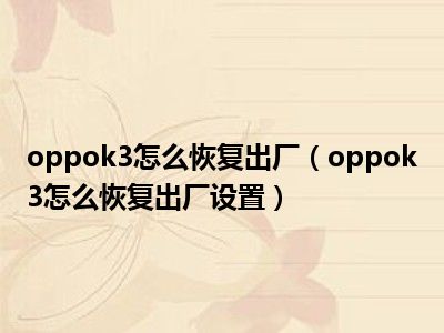 导读 1、oppok3怎么恢复出厂设置2、1 返回手机桌面,找到并打开系统【设置】。3、2 向下滑动菜单选项以进入[其他设置]。4、3 我们可以看到【备份