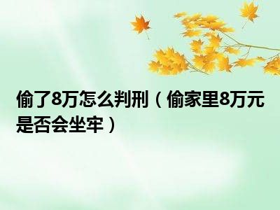 偷家里8万元的,如果没有其他严重情节,并且被盗窃者以及其他家庭成员没有对此事表示强烈愤慨要求追究盗窃者的刑事责任的,则一般可不按犯罪处理,也就是说盗窃罪不会被追究刑事责任,因为司法解释规定,盗窃自己家里的财物或者近亲属的财物,一般可不按犯罪处理;反之如果家庭成员要求追究刑事责任的,则构成盗窃罪会坐牢,并且这种情形属于盗窃数额巨大的情况,具体来说行为人会被处三年以上十年以下有期徒刑,并处罚金。