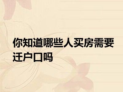 导读 目前大家应该是对哪位知道买房子需要迁户口吗比较感兴趣的,所以今天好房网小编CC就来为大家整理了一些关于哪位知道买房子需要迁户