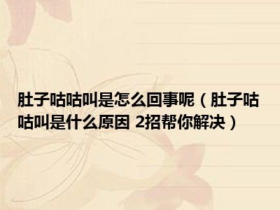目前大家应该是对肚子咕咕叫是什么原因 2招帮你解决比较感兴趣的,所以今天小编CC就来为大家整理了一些关于肚子咕咕叫是什么原因 2招帮你解决方面的相关知识来分享给大家,希望大家会喜欢哦。