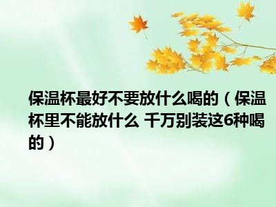 导读 目前大家应该是对保温杯里不能放什么 千万别装这6种喝的比较感兴趣的,所以今天小编CC就来为大家整理了一些关于保温杯里不能放什么 千万...