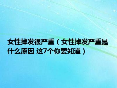 目前大家应该是对女性掉发严重是什么原因 这7个你要知道比较感兴趣的,所以今天小编CC就来为大家整理了一些关于女性掉发严重是什么原因 这7个你要知道方面的相关知识来分享给大家,希望大家会喜欢哦。