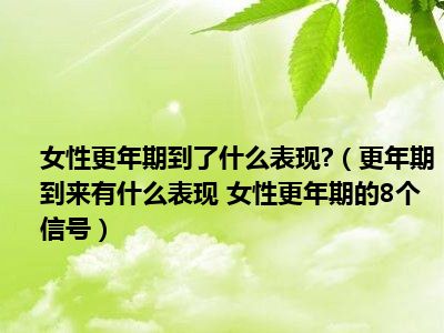 目前大家应该是对更年期到来有什么表现 女性更年期的8个信号比较感兴趣的,所以今天小编CC就来为大家整理了一些关于更年期到来有什么表现 女性更年期的8个信号方面的相关知识来分享给大家,希望大家会喜欢哦。