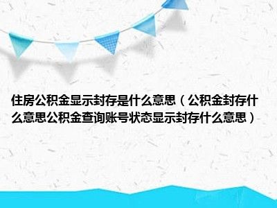 导读 目前大家应该是对公积金封存什么意思公积金查询账号状态显示封存什么意思比较感兴趣的,所以今天好房网小编CC就来为大家整理了一些关于公积
