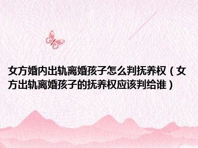 目前大家应该是对女方出轨,离婚孩子的抚养权应该判给谁比较感兴趣的,所以今天CC就来为大家整理了一些关于女方出轨,离婚孩子的抚养权应该判给谁方面的相关知识来分享给大家,希望大家会喜欢哦。