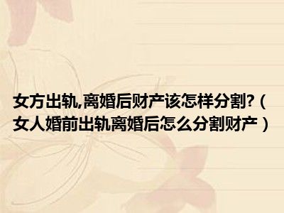 目前大家应该是对女人婚前出轨离婚后怎么分割财产比较感兴趣的,所以今天CC就来为大家整理了一些关于女人婚前出轨离婚后怎么分割财产方面的相关知识来分享给大家,希望大家会喜欢哦。