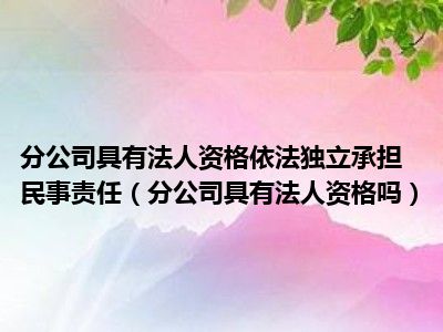 目前大家应该是对分公司具有法人资格吗比较感兴趣的,所以今天CC就来为大家整理了一些关于分公司具有法人资格吗方面的相关知识来分享给大家,希望大家会喜欢哦。