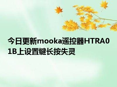 目前大家应该是对mooka遥控器HTRA01B上设置键长按失灵比较感兴趣的,所以今天好房网小编CC就来为大家整理了一些关于mooka遥控器HTRA01B上设置键长按失灵方面的相关知识来分享给大家,希望大家会喜欢哦。