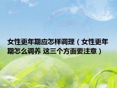 目前大家应该是对女性更年期怎么调养 这三个方面要注意比较感兴趣的,所以今天小编CC就来为大家整理了一些关于女性更年期怎么调养 这三个方面要注意方面的相关知识来分享给大家,希望大家会喜欢哦。