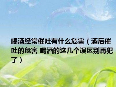 目前大家应该是对酒后催吐的危害 喝酒的这几个误区别再犯了比较感兴趣的,所以今天小编CC就来为大家整理了一些关于酒后催吐的危害 喝酒的这几个误区别再犯了方面的相关知识来分享给大家,希望大家会喜欢哦。