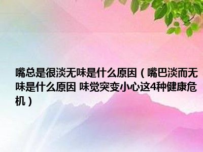 目前大家应该是对嘴巴淡而无味是什么原因 味觉突变,小心这4种健康危机!比较感兴趣的,所以今天小编CC就来为大家整理了一些关于嘴巴淡而无味是什么原因 味觉突变,小心这4种健康危机!方面的相关知识来分享给大家,希望大家会喜欢哦。