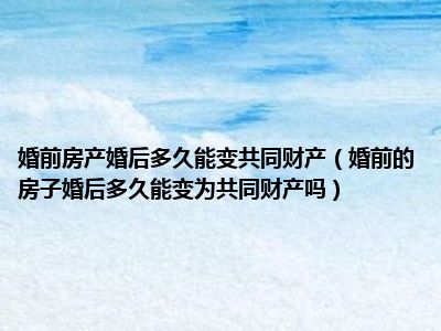 目前大家应该是对婚前的房子婚后多久能变为共同财产吗比较感兴趣的,所以今天CC就来为大家整理了一些关于婚前的房子婚后多久能变为共同财产吗方面的相关知识来分享给大家,希望大家会喜欢哦。