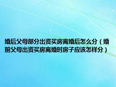 目前大家应该是对婚前父母出资买房,离婚时房子应该怎样分比较感兴趣的,所以今天CC就来为大家整理了一些关于婚前父母出资买房,离婚时房子应该怎样分方面的相关知识来分享给大家,希望大家会喜欢哦。