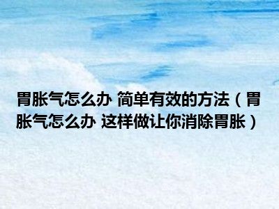 目前大家应该是对胃胀气怎么办 这样做让你消除胃胀比较感兴趣的,所以今天小编CC就来为大家整理了一些关于胃胀气怎么办 这样做让你消除胃胀方面的相关知识来分享给大家,希望大家会喜欢哦。