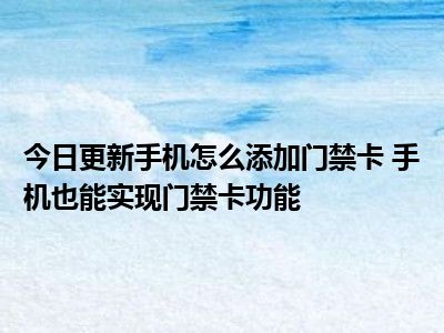 目前上述的内容应该能够为大家解答出大家对于手机怎么添加门禁卡 手机也能实现门禁卡功能的疑惑了,所以如果大家还想要了解更多的知识内容,也可以关注本站其他文章进行了解哦。