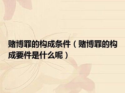 客体要件本罪侵犯的客体是社会主义的社会风尚。赌博不仅危害社会秩序,影响生产、工作和生活,而且往往是诱发其他犯罪,对社会危害很大。
