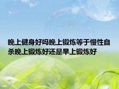 目前大家应该是对晚上运动好吗,晚上运动等于慢性自杀,晚上运动好还是早上运动好比较感兴趣的,所以今天小编CC就来为大家整理了一些关于晚上运动好吗,晚上运动等于慢性自杀,晚上运动好还是早上运动好方面的相关知识来分享给大家,希望大家会喜欢哦。