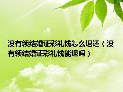 目前大家应该是对没有领结婚证,彩礼钱能退吗比较感兴趣的,所以今天CC就来为大家整理了一些关于没有领结婚证,彩礼钱能退吗方面的相关知识来分享给大家,希望大家会喜欢哦。
