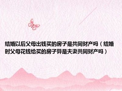 目前大家应该是对结婚时父母花钱给买的房子,算是夫妻共同财产吗比较感兴趣的,所以今天CC就来为大家整理了一些关于结婚时父母花钱给买的房子,算是夫妻共同财产吗方面的相关知识来分享给大家,希望大家会喜欢哦。