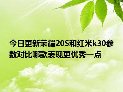 目前上述的内容应该能够为大家解答出大家对于荣耀20S和红米k30参数对比,哪款表现更优秀一点的疑惑了,所以如果大家还想要了解更多的知识内容,也可以关注本站其他文章进行了解哦。