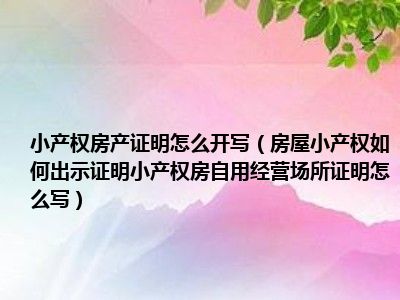 导读 目前大家应该是对房屋小产权如何出示证明小产权房自用经营场所证明怎么写比较感兴趣的,所以今天好房网小编CC就来为大家整理了一些关于房屋