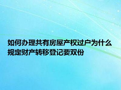 导读 目前大家应该是对如何办理共有房屋产权转移 房屋登记办法为什么规定房产转移登记应当由双 比较感兴趣的,所以今天好房网小编CC就来为大家