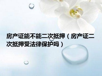 导读 目前大家应该是对房产证二次抵押受法律保护吗比较感兴趣的,所以今天好房网小编CC就来为大家整理了一些关于房产证二次抵押受法律保护吗方面