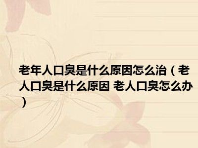 目前大家应该是对老人口臭是什么原因 老人口臭怎么办比较感兴趣的,所以今天小编CC就来为大家整理了一些关于老人口臭是什么原因 老人口臭怎么办方面的相关知识来分享给大家,希望大家会喜欢哦。