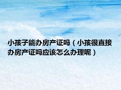 导读 目前大家应该是对小孩很直接办房产证吗应该怎么办理呢比较感兴趣的,所以今天好房网小编CC就来为大家整理了一些关于小孩很直接办房产证吗应