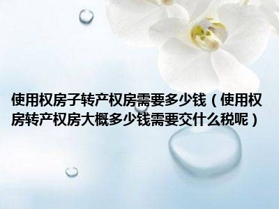 第一,你要搞清楚是否能够转换为产权房,使用权房分为:为可变产权的 使用权房屋 就是 永久使用权的房屋;比方说单位的大产权不愿意卖,单位房就只能是使用权。使用权房屋可以转产权,买入价格的计算较为复杂,政府每年公布一个基准价格,再按照工龄、房屋面积、朝向、楼层等因素进行加减,具体您可以联系当地的物业公司。如可以买,那和正常买房的税费一样:这类使用权房产就相当于尚未被购买的公房,如果想将产权变更到个人,则需要在每年的年初或年中,凭单位工龄介绍信到房管所或产权单位的房管科参加房改,当然,需按建房成本支付费用。而如遇拆迁,房管所或产权单位也有权在拆迁费里扣掉这部分钱。房屋使用者如想获得产权,所交钱数的计算公式为:房屋使用面积乘以系数33后折合成房屋建筑面积,再乘以每平方米1560元。而按这个公式计算,一个使用面积30平方米的使用权房如遇拆迁,所需交给产权单位的钱仅为62244元。再加上折工龄及折旧,每套房合下来的一般只需要交纳两万元左右。使用权的转换不涉及任何交易税费只需要交纳过户费用 .