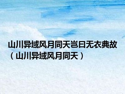 导读相信目前很多小伙伴对于山川异域,风月同天都比较感兴趣,那么小搜今天在网上也是收集了一些与山川异域,风月同天相关的信息来分享给大家,...
