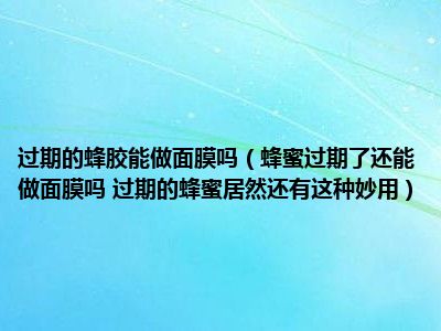 目前大家应该是对蜂蜜过期了还能做面膜吗 过期的蜂蜜居然还有这种妙用比较感兴趣的,所以今天小编CC就来为大家整理了一些关于蜂蜜过期了还能做面膜吗 过期的蜂蜜居然还有这种妙用方面的相关知识来分享给大家,希望大家会喜欢哦。