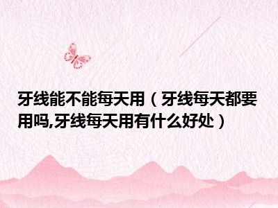 目前大家应该是对牙线每天都要用吗,牙线每天用有什么好处比较感兴趣的,所以今天小编CC就来为大家整理了一些关于牙线每天都要用吗,牙线每天用有什么好处方面的相关知识来分享给大家,希望大家会喜欢哦。