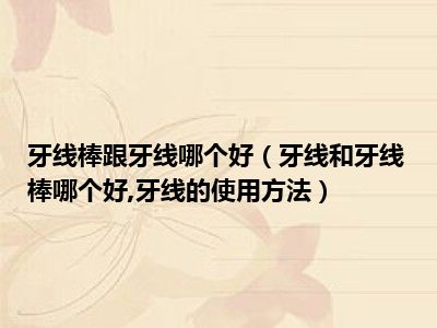 目前大家应该是对牙线和牙线棒哪个好,牙线的使用方法比较感兴趣的,所以今天小编CC就来为大家整理了一些关于牙线和牙线棒哪个好,牙线的使用方法方面的相关知识来分享给大家,希望大家会喜欢哦。