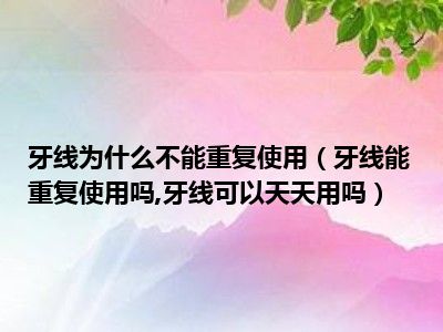 目前大家应该是对牙线能重复使用吗,牙线可以天天用吗比较感兴趣的,所以今天小编CC就来为大家整理了一些关于牙线能重复使用吗,牙线可以天天用吗方面的相关知识来分享给大家,希望大家会喜欢哦。