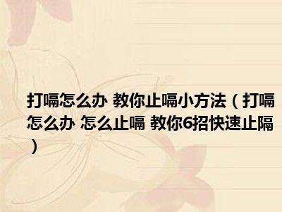 目前大家应该是对打嗝怎么办 怎么止嗝 教你6招快速止隔比较感兴趣的,所以今天小编CC就来为大家整理了一些关于打嗝怎么办 怎么止嗝 教你6招快速止隔方面的相关知识来分享给大家,希望大家会喜欢哦。